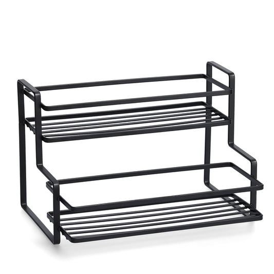 Slim, Stackable Two Tier Metal Shoe Rack- Black
