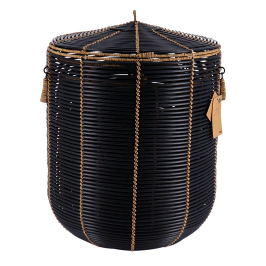 Round Laundry Basket, Rattan Effect - Black/Natural - Various Sizes