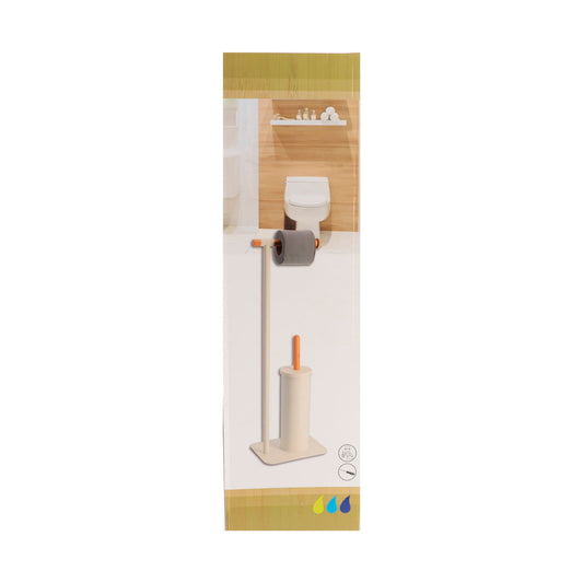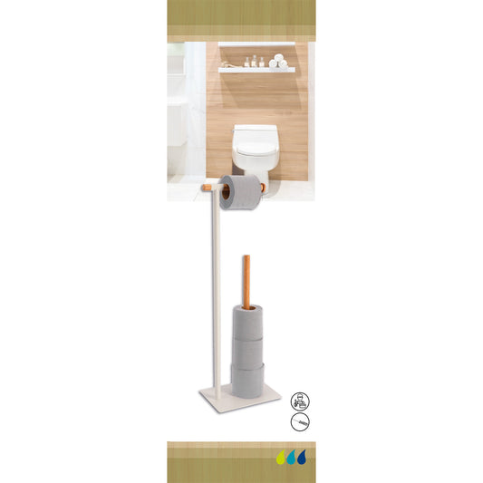 Metal and Bamboo Toilet Brush and Toilet Paper Dispenser - Various Colours