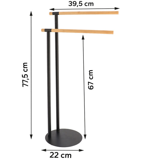 Acacia Metal Towel Rack With 2 Bars, Foldable