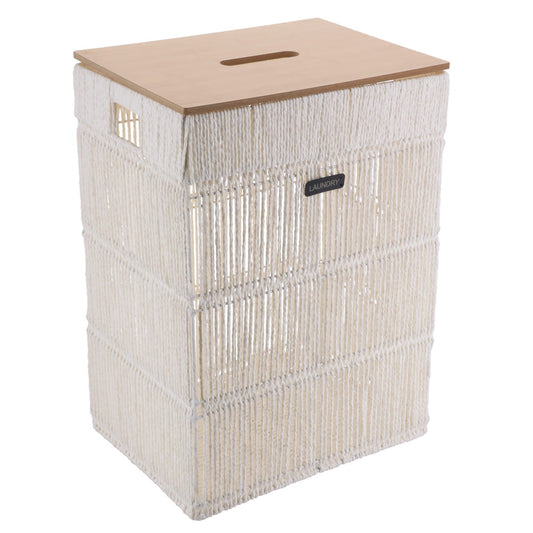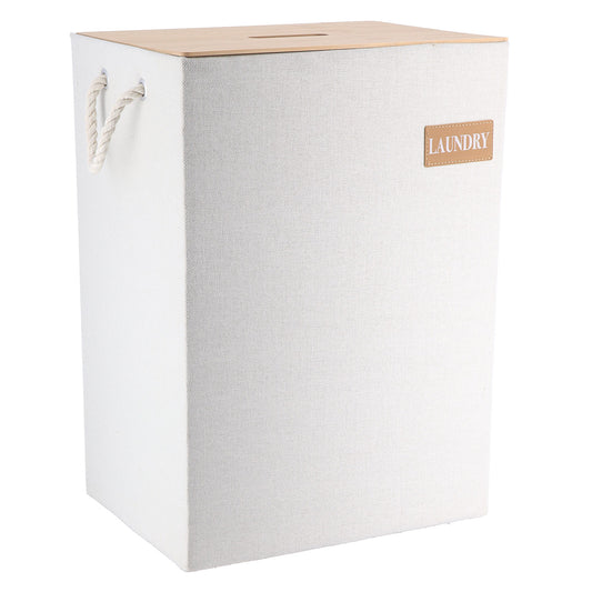 Polyester/Carboard Rectangular Baskets With Bamboo Lid, White - Various Sizes