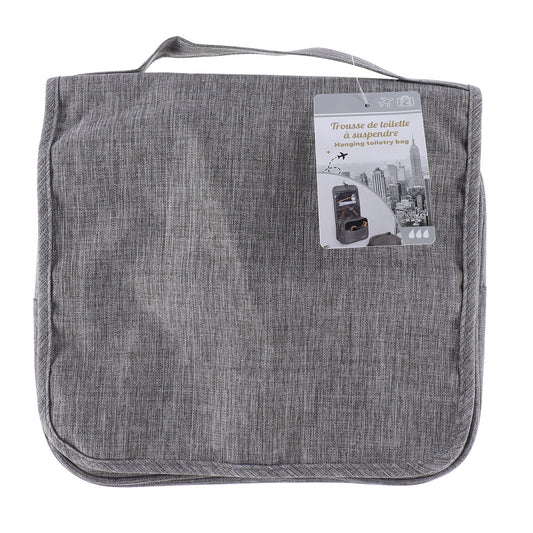 Zipped Toiletry Bag To Hang, Velcro Closure - Heather Grey