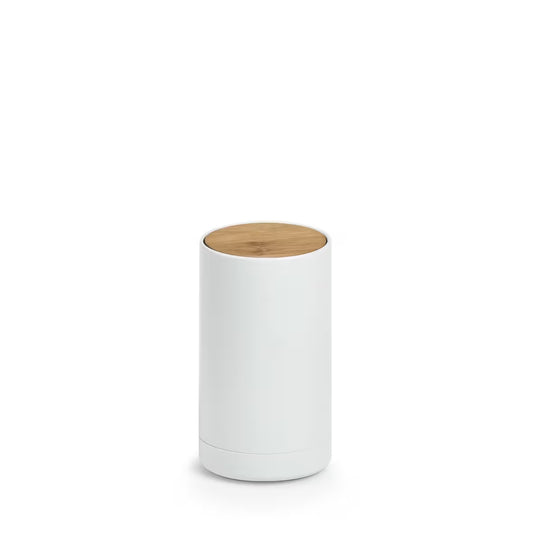 Cotton Swab Dispenser- Plastic/Bamboo- White