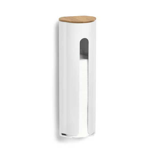 Cotton Pad Dispenser- Plastic/Bamboo- White