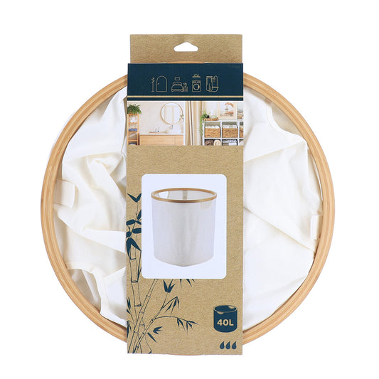 Polyester Foldable Storage Basket With bamboo Frame, Round Shape - Natural/Bamboo