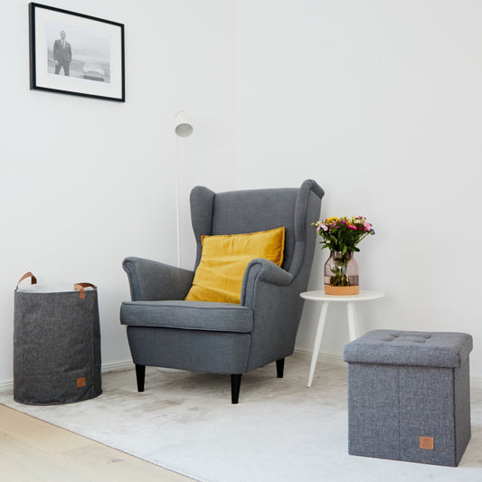 Storage Basket "Stripes", Canvas - Grey - Various Sizes