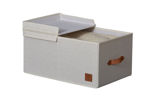 Fabric Storage Box With Hinged Lid - Cream