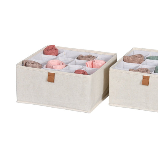 Fabric Wardrobe Organiser - Set With 16 Compartments - 2 Pieces - Cream