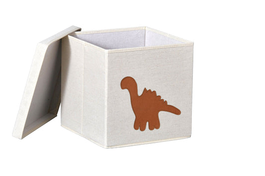 Storage Box With Lid - White With Dinosaur