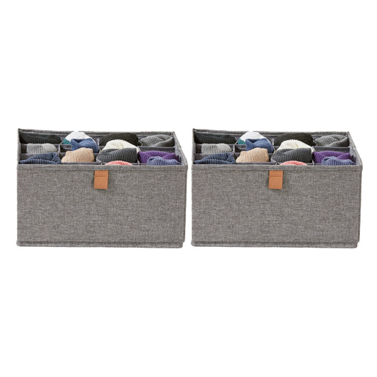 Premium Fabric Wardrobe Organiser - Set of 2 With 16 Compartments - Grey