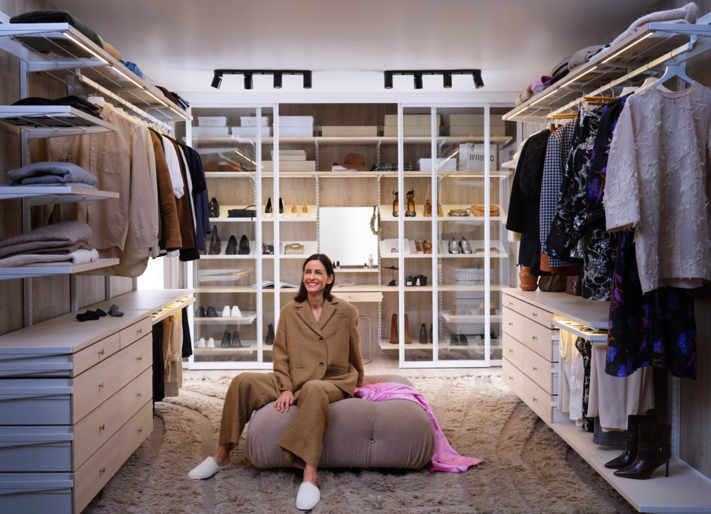 Décor+ grew from the idea to combine the ingenuity of a made to measure Elfa system with solid wooden shelves and drawers. The result is a modern and functional system with a clean, calm look.