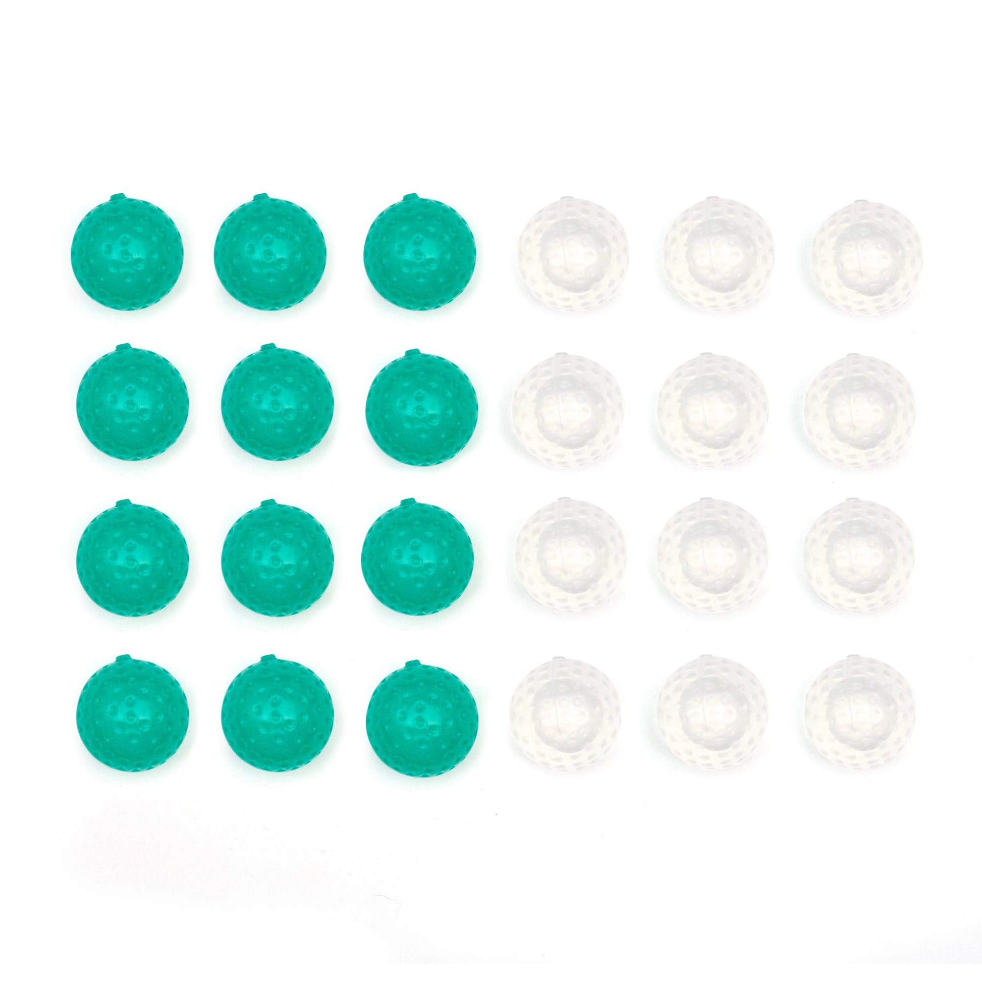 Set of 24 reusable golf ball shaped ice cubes. These will keep your drink cold for 18-holes! Freezable and reusable. Filled with distilled water. Durable plastic. Never waters down your drink.