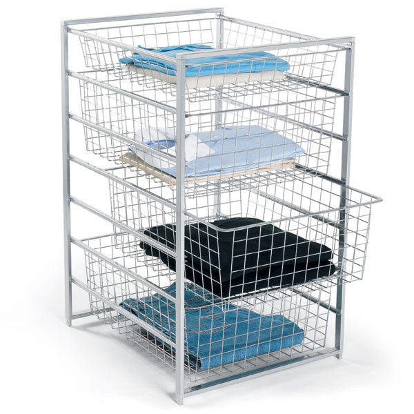 The elfa Drawer Frames are available in four widths and three heights. Choose the size that works best for your storage needs. Frames can be stacked to create even more options. Complete your frame with the appropriate elfa Wire or Mesh Drawers to build a customized unit. Add a Melamine Top to create a solid work surface. Add the elfa Casters for mobility.
