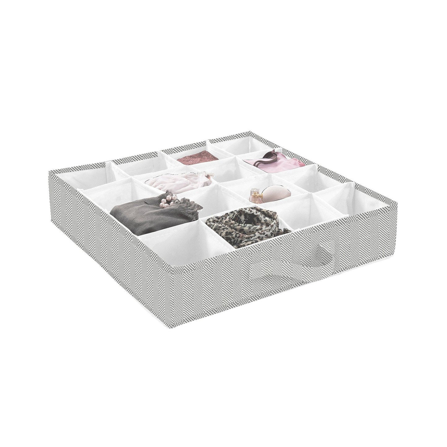 For a classic and elegant walk-in closet, coordinate this drawer divider with all the storage units in the Boston range. Made of 100% polypropylene non-woven with gray and white herringbone patterns, this organizer will help you keep order in your drawers and storage units. Dimensions of the divider 40 X 40 X H.9 cm.