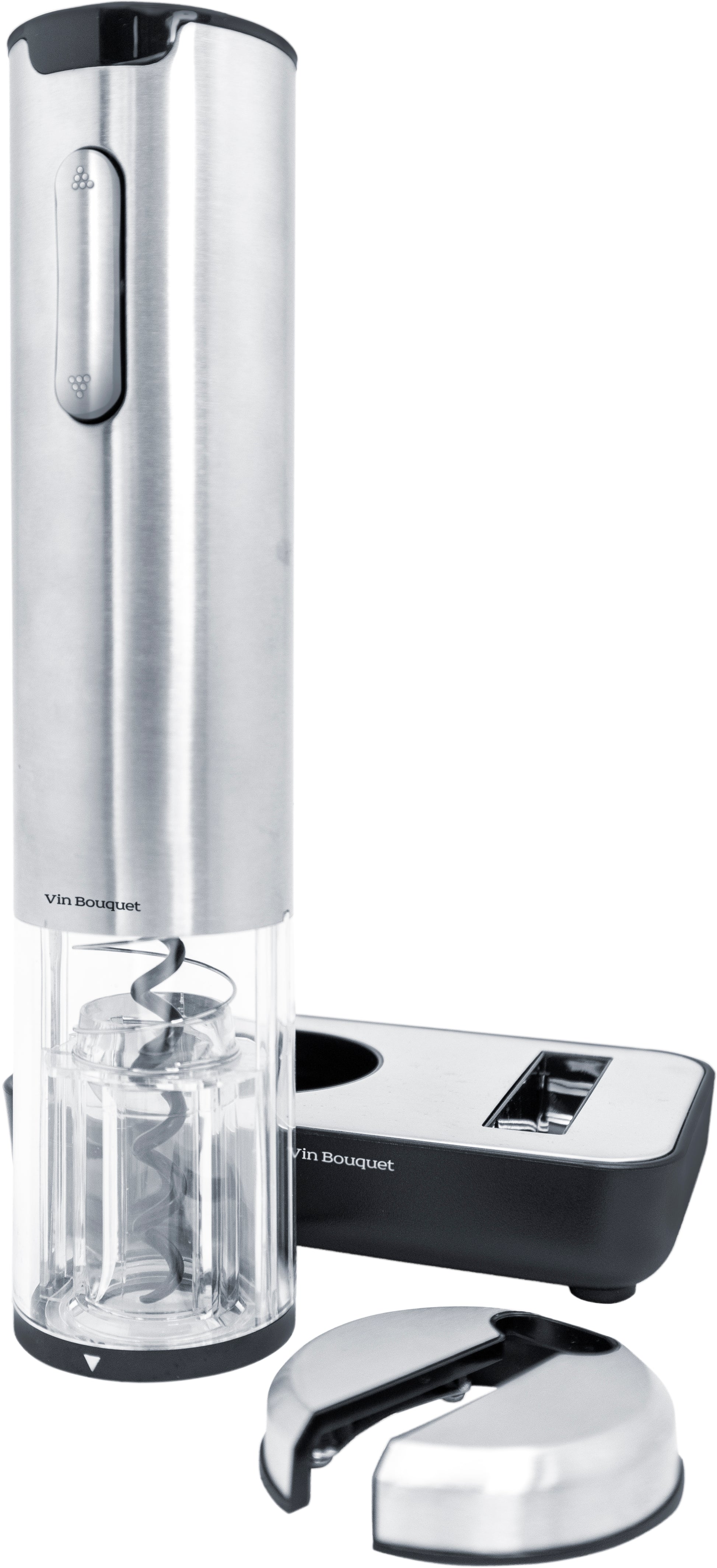 The Vin Bouquet Deluxe Electric Corkscrew transforms any dinner party into a hassle-free experience. With just the touch of a button, it effortlessly removes the cork, while the blue LED light adds a touch of modern style. It includes a charging base and foil cutter: everything you need to open a bottle in style and without breaking a sweat.