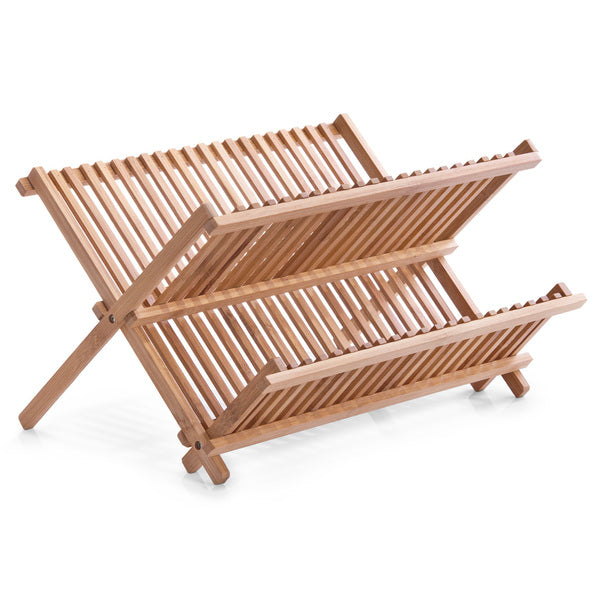 With its convenient folding option and dimensions of 42cm x 35cm x 25cm, this dish rack is an efficient and space-saving addition to any kitchen. Featuring sustainable bamboo, this dish rack is not only practical, but also environmentally friendly.