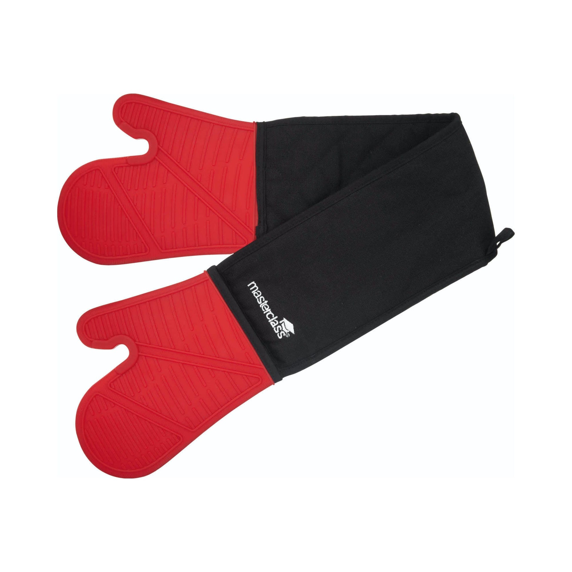 Have complete confidence when handling hot items, this revolutionary MasterClass double oven glove features a seamless silicone section which offers a natural non-slip grip, heat and total water resistance. Be sure to protect yourself against steam and liquid burns, ensuring you have a secure and comfortable hold on any item. The double oven glove is also ideal for use when barbecuing, featuring comfortable extra long cotton cuffs.