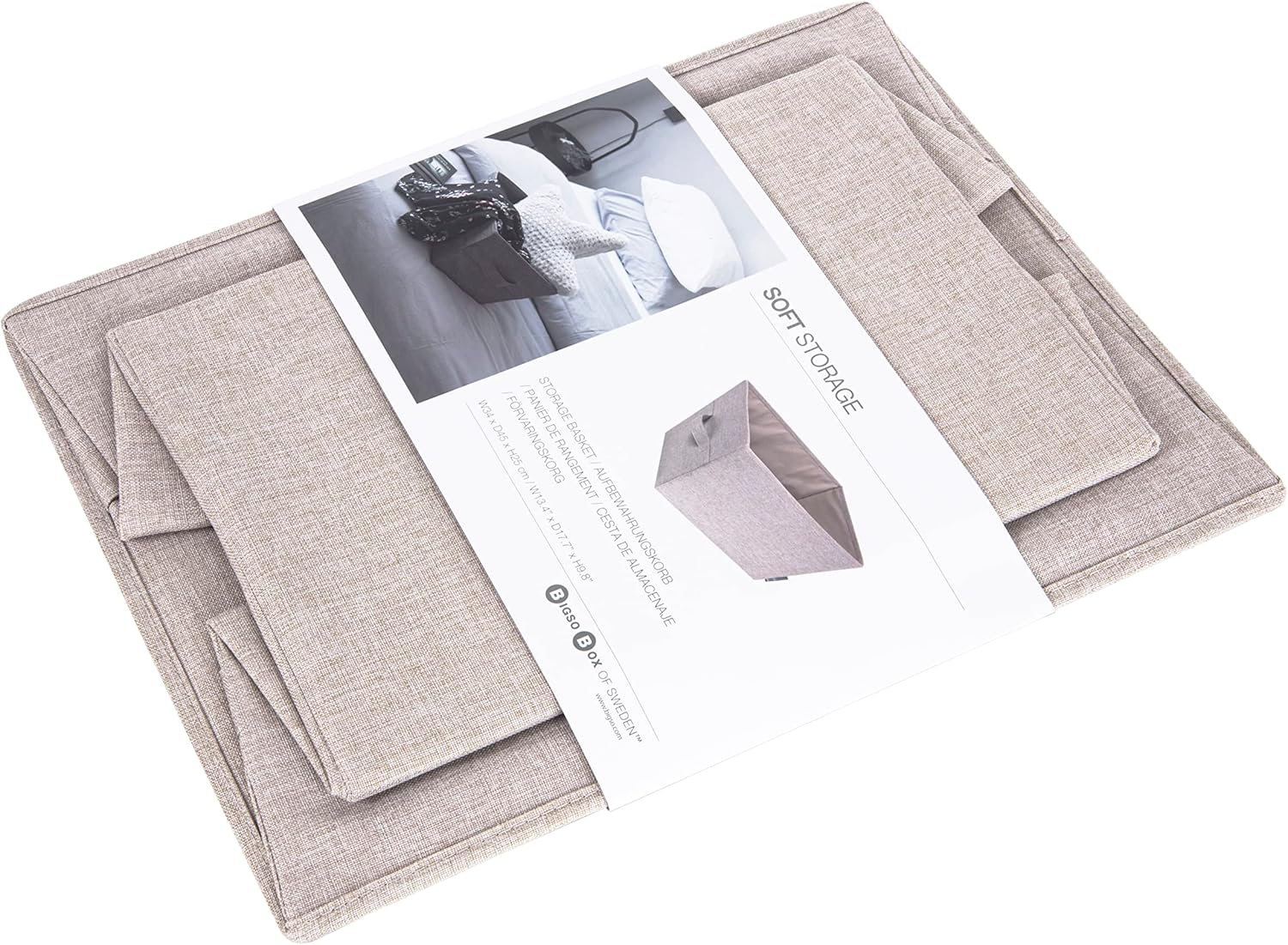 Bigso Box of Sweden Foldable Storage Box for Home and Shelves - Large Fabric Storage Basket with Easy-Carry Handles - Storage Bin for Blankets, Towels, Toys.