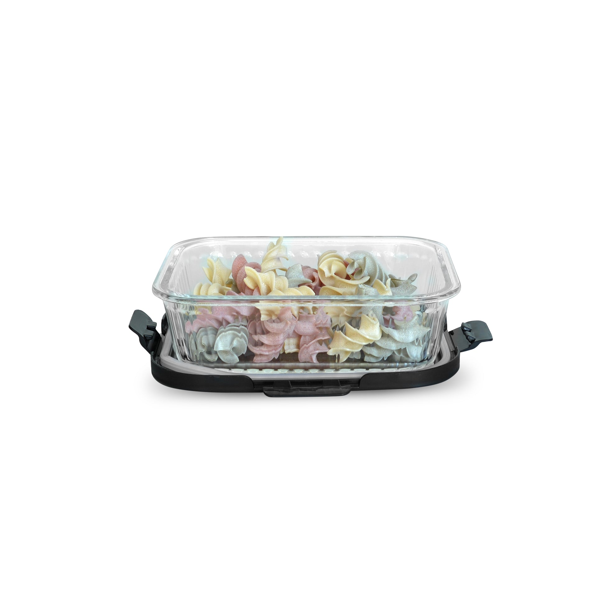 Food container with glass base and stainless-steel lid. This container is the ideal choice for users looking for an alternative to the plastic container.