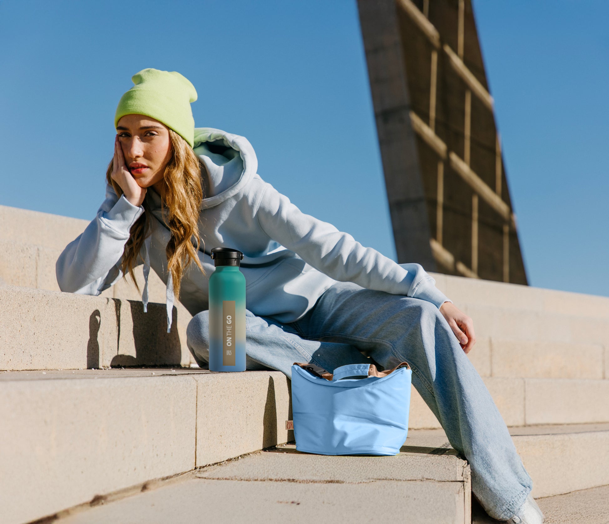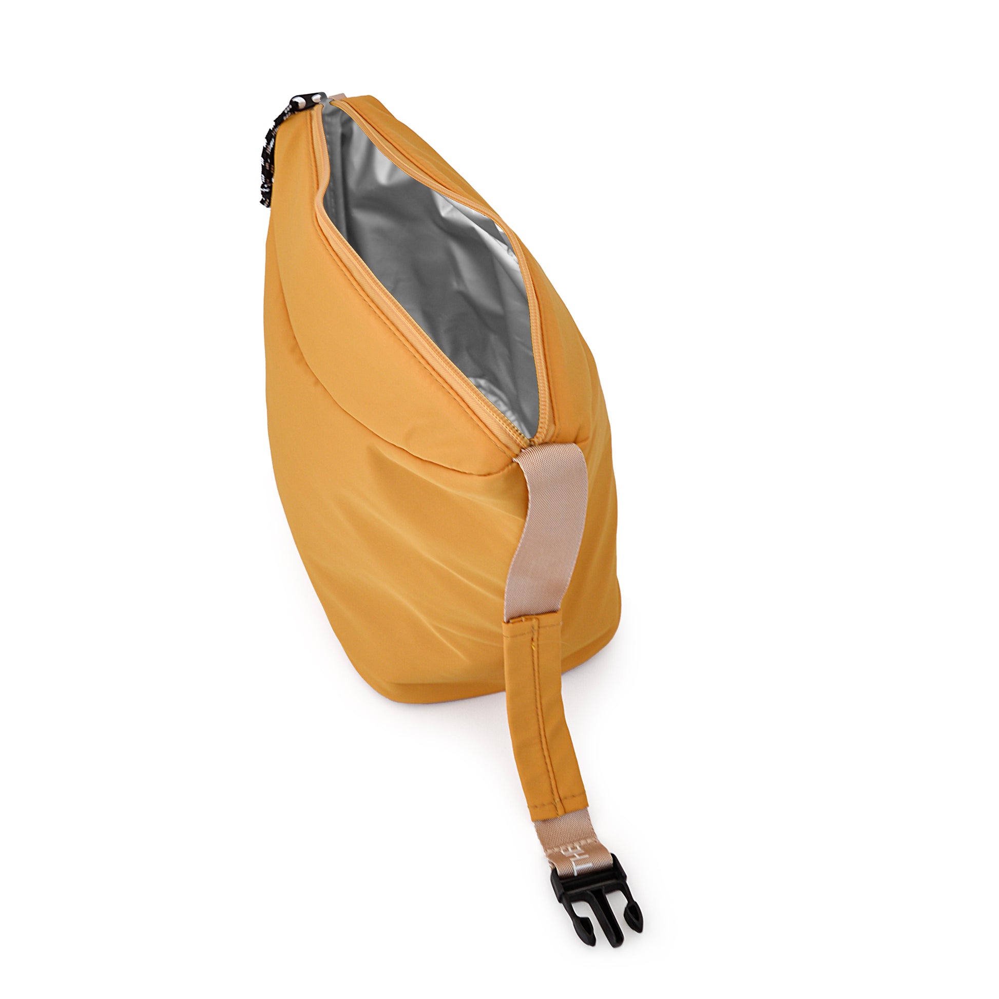 The bag comfortably fits a food container, snacks, a cutlery set, napkins, and other small accessories. Featuring a secure zipper closure and a click handle, it offers easy access to your items. Its flexible, foldable design allows you to carry it by hand, hang it, or tuck it inside a backpack, adapting seamlessly to your lifestyle.