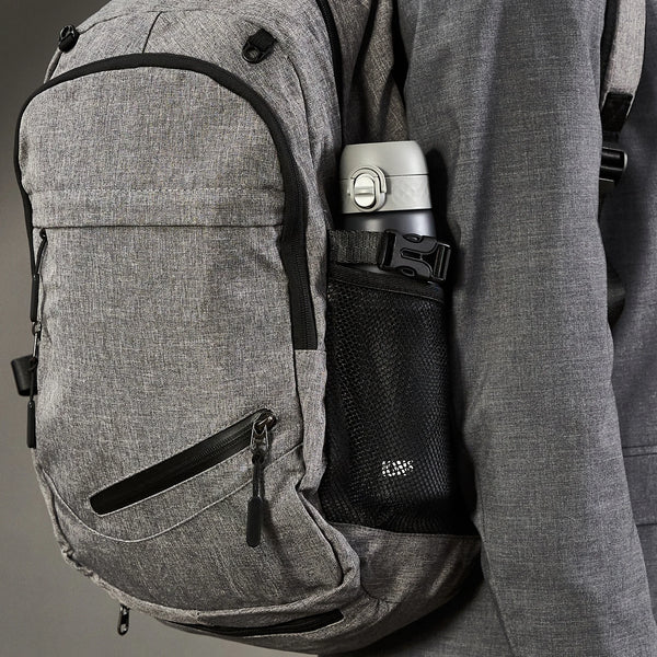 Small enough as a kids water bottle for their school lunch boxes or for smaller bags about town. The width of a soda can, it fits perfectly into all car cup holders and pockets on all backpacks.