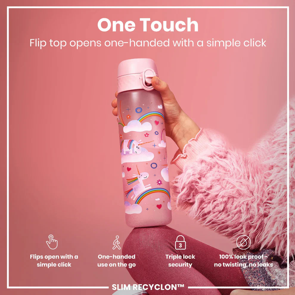 Ion8 Slim Water Bottle Unicorns Rainbows -Rose-500ml