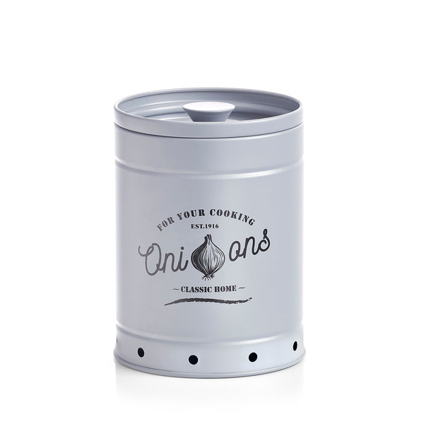 The versatile onion is on the ingredient list of almost every savory dish. Therefore, it's always worth having some of these bulbs at home. However, this vegetable has its own storage requirements: For long-term storage, it needs to be kept in a dark, dry, and as cool as possible. With this storage container, you can easily fulfill the vegetable's needs and also bring a beautiful decorative item into your home. The gray storage container is equipped with air holes to allow for the necessary air circulation.