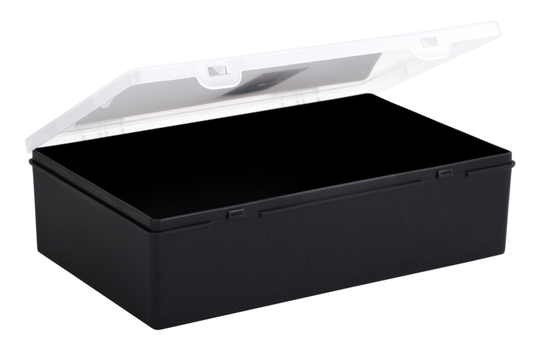 Secure hinged lid with double clips. Clear lid to easily view inside. Hardwearing and durable. Ideal for crafts, diy and hobbies.