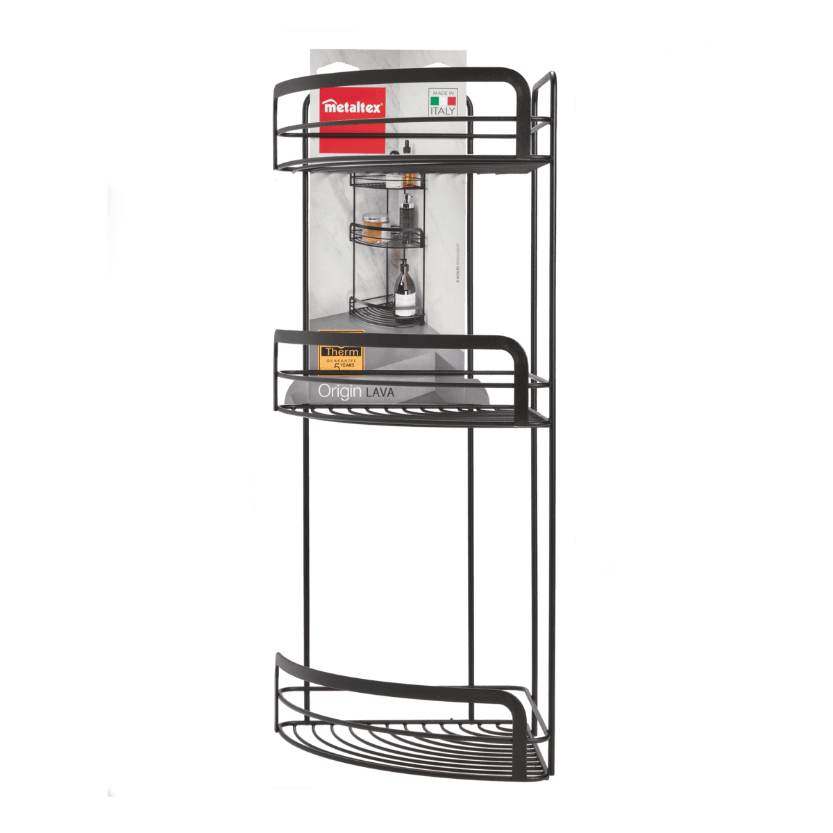 The Lava Origin 3-Tier Corner Shelf is crafted from premium iron wire with a durable touch-therm coating, ensuring long-lasting quality. Designed for space optimization, it fits perfectly into any corner and makes this a perfect organizer for a range of functions. It has Metaltex's trademark Touch-Therm coating that makes it rust-proof and scratch-resistant.