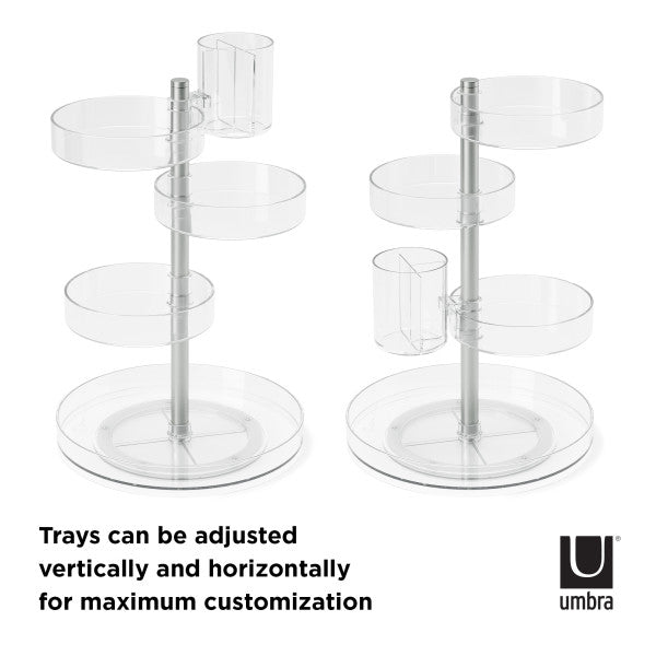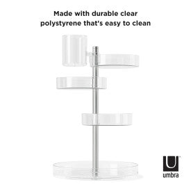 De-clutter and organize your everyday essentials with Pirouette. This cosmetic organizer features multiple compartments that rotate 360-degrees with ease. Pirouette has a large capacity but a small footprint, making it easy to display on any countertop or vanity. Each layer's placement can be customized and locked into place for varying sized products. Store and organize your makeup or favorite products with this all-in-one rotating makeup organizer. Measures 14 x 12 x 6 inches (35.5 x 30 x 15 cm).