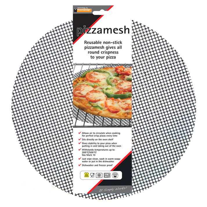 Pizzamesh sits directly on the oven shelf. The mesh design allows air to circulate for all round even cooking - no more soggy bottoms!