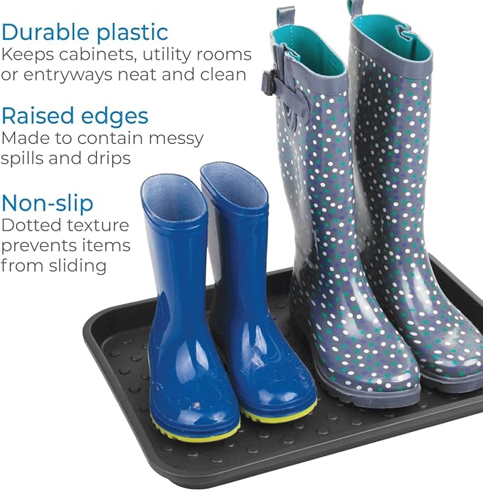 - VERSATILE – Not just a drip tray or water mat, it can also hold cleaning supplies, sponges, soap, rags, craft supplies and paint brushes, and much more; can also be used as a boot tray or for all types of footwear to keep entryways neat and tidy