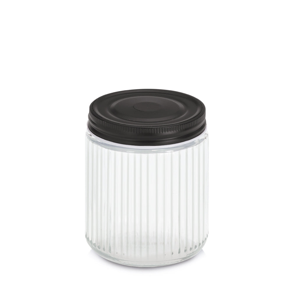 Round Ribbed Glass Jar with Black Steel Lid
