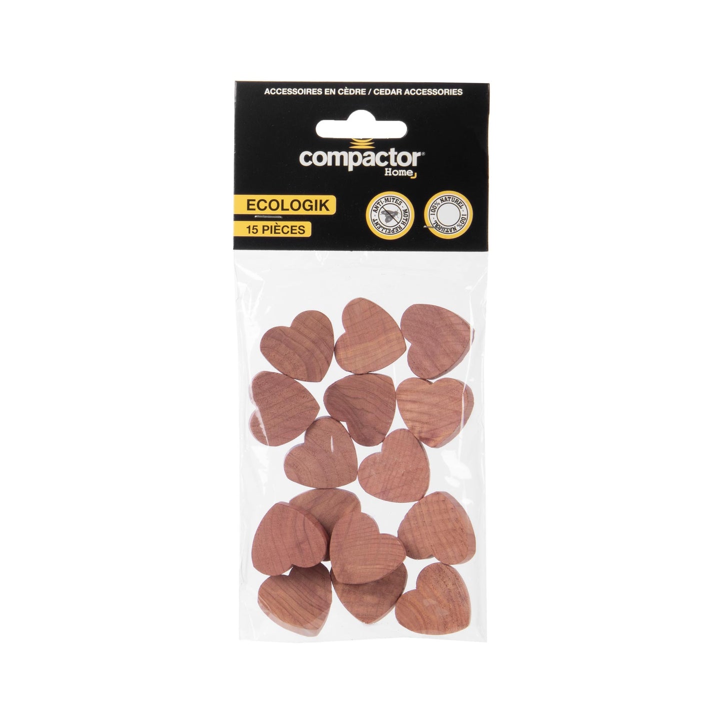- Contents: 15 x Natural moth repellent hearts made of red cedar wood compactor, material: red cedar wood, dimensions: (WxDxH) 2 x 1 x 2.5 cm, brown, CED025