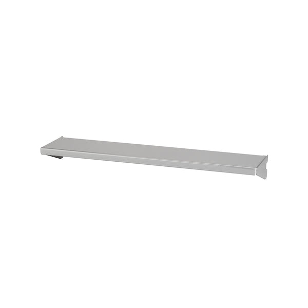 A reversible shelf that can be installed either as a shelf or as tray, suitable for storing smaller items in shallow spaces. Comes with integrated brackets, can be mounted between two standards.