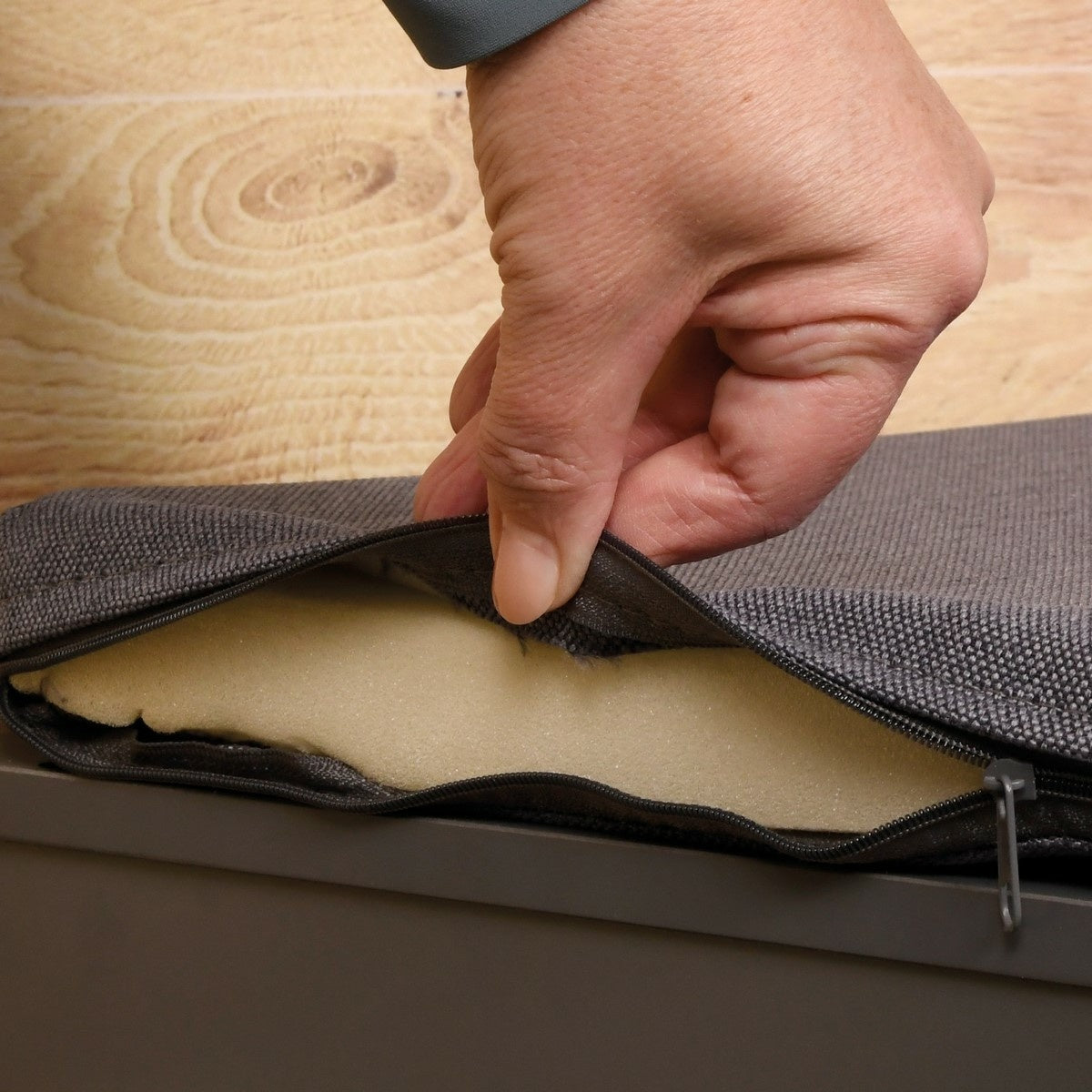 This versatile shoe cabinet combines intelligent storage with functional seating, making it an essential addition to compact living spaces. The light oak and brown finish complements contemporary and traditional interiors alike, while the integrated gray cushion transforms the piece into a comfortable perch for putting on shoes or a convenient seating solution in hallways, bedrooms, or bathrooms. Engineered for stability and ease of use, the cushion features eight secure velcro fasteners to prevent shifting, ensuring it remains firmly in place during daily use. The cabinet includes two removable shelves, allowing you to customize internal storage to accommodate various shoe sizes and styles—from flat pumps to chunky boots. This flexibility means you can adapt the layout as your collection evolves. At 43cm high, 29.5cm deep, and 53cm wide, the dimensions are specifically designed to fit snugly into tight corners and narrow entryways without consuming excessive floor space. The durable construction and thoughtful design make this piece both a practical organizational tool and an