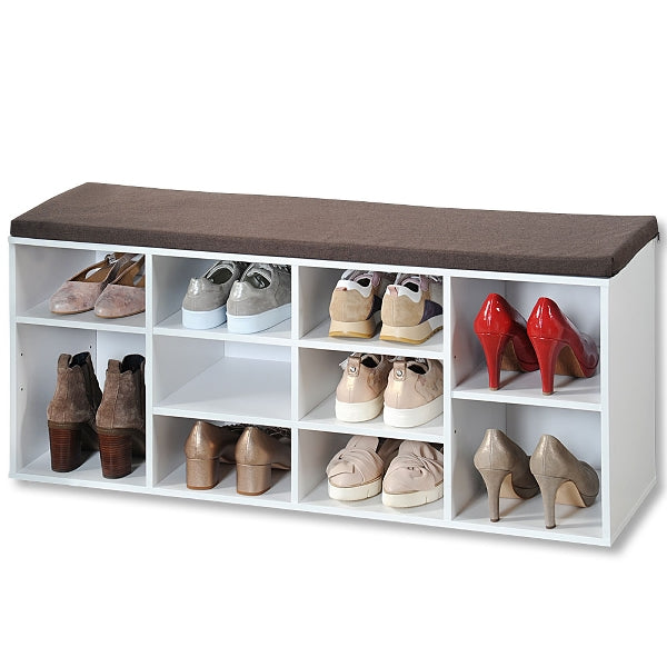Shoe Storage Bench White Brown Cushion