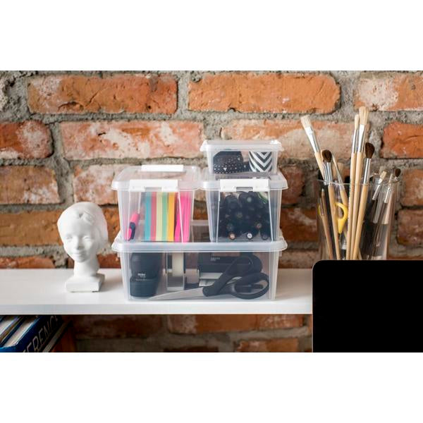 The SmartStore™ Home range offers a wide range of premium quality boxes for all kinds of storage needs in your home. The boxes come with sleek lids that give a sophisticated and elegant touch. This 0,3 litre box is perfect for the smallest items, such as office supplies, arts & crafts, small toys and beads. The transparent material makes it easy to quickly identify the contents. Sturdy clips made of recycled plastic keep the lid firmly in place. The boxes nest without lid, and stack with lid. The SmartStore™ Home 0,3 L box is modular with all boxes in the light-blue color code; 1,5 L, 4 L, 7,5 L, 14 L and 25 L. Made in Sweden, from durable food grade plastic.