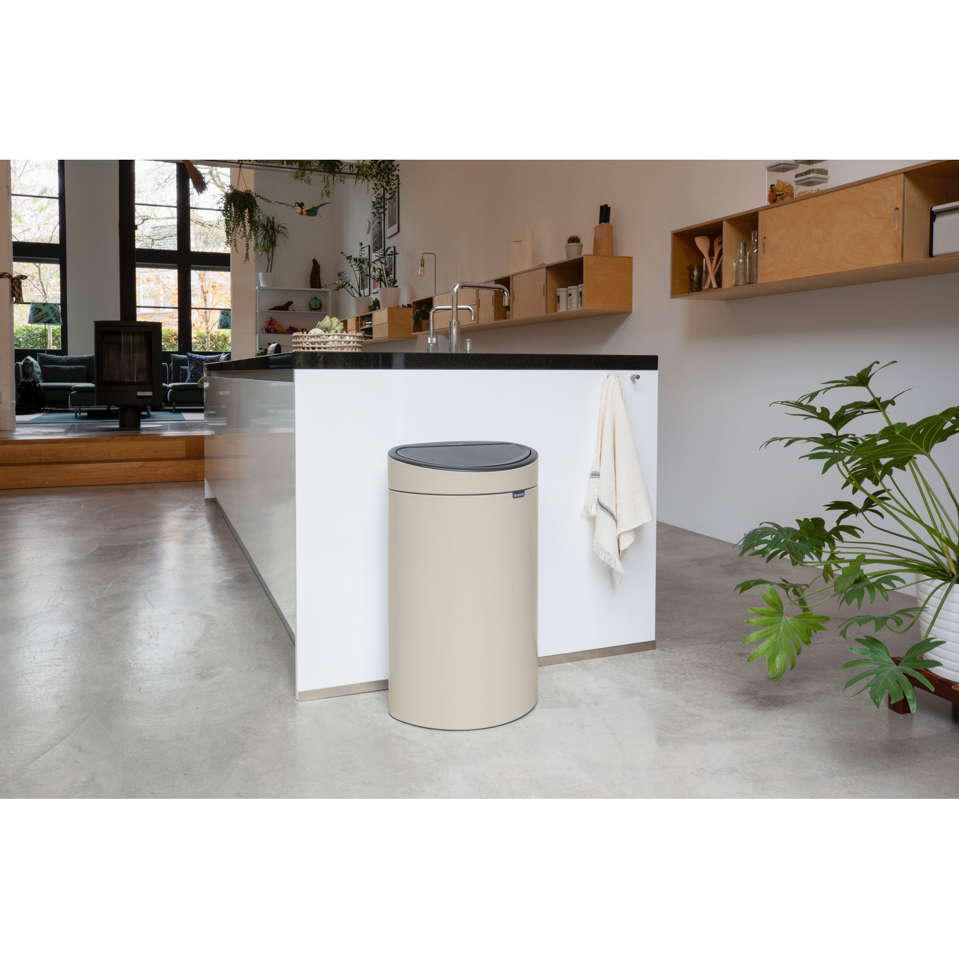 Add a touch of design to your home with the Brabantia Touch Bin 40 litre. A great, yet space efficient, organising help that looks the part too. Just touch the lid and it opens smoothly. It also has a timeless design, is easy to clean, and it protects your floor thanks to the protection rim. This touch bin is ready for years of intensive, problem free use!